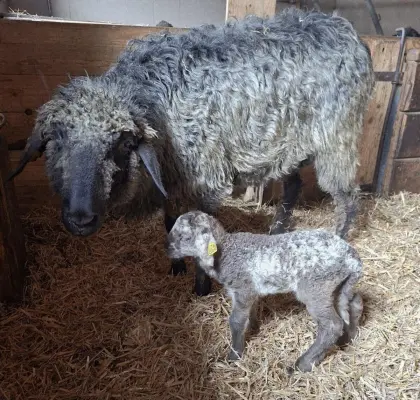 Nettes Mutterschaf mit männlichem Lamm. HB-Nachbewertung möglich. Preis auf Anfrage. Schafe Steinschafe