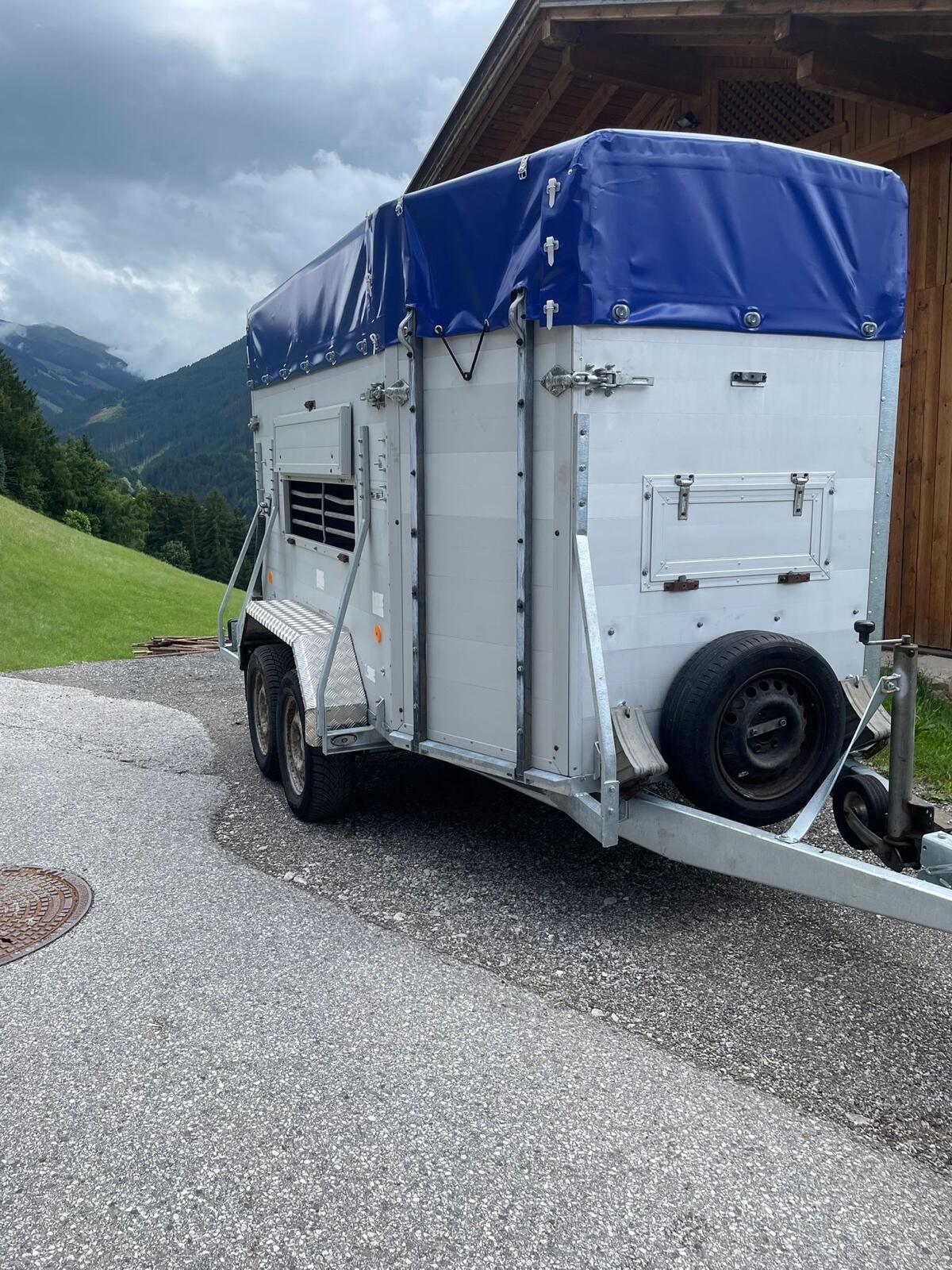 Stabiler Alu-Viehanhänger mit 3 x 1, 8 m Innenmaß, 3 Lüftungsklappen, Personentür und Reserverad in sehr gutem Zustand zu verkaufen. Anhänger Anhänger für Tiertranspo
