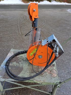 Verkaufe Hilfswinde mit abnehmbarer Trommel, Zugkraft 450 kg, Trommel für 300 m Seil, Turm höhenverstellbar, kann beim Funk Gas +/- oder Zapfwelle ein/aus dazugeschl