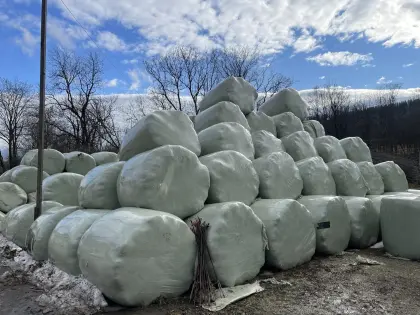 9 Silageballen, 1. Schnitt 2025. Nähe Vitis. Futterbörse Silageballen