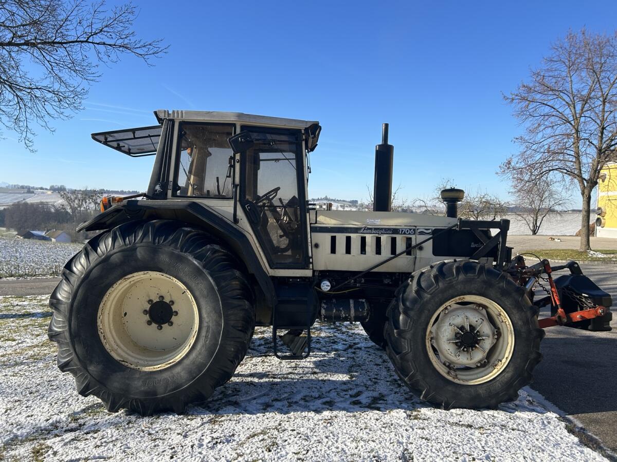 Der Lamborghini 1706 hat 160 PS mit ca. 9.300 Bstd., das Heckhubwerk stemmt ca. 9 t. 5-Schar-Pflug ist kein Problem. Weiteres hat er 1.000er ZFW und 4 Stg. hinten, F