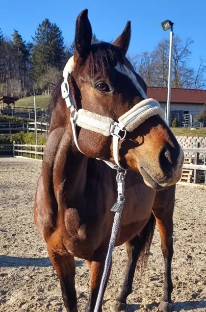 6j. Stute, englisches Vollblut, gutes Papier, 160 cm. Im österreichischen Zuchtbuch für Warmblut aufgenommen. Unterm Sattel auch von schwächeren Reitern zu handhaben