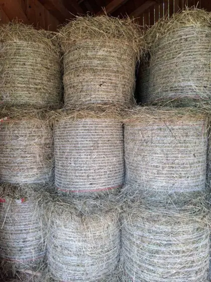 Heu vom ersten Schnitt 2025. Dm. 60 cm und 60 cm hoch, ca. 25 Kilo schwer. 60 Stk. vorhanden. Futterbörse Heu