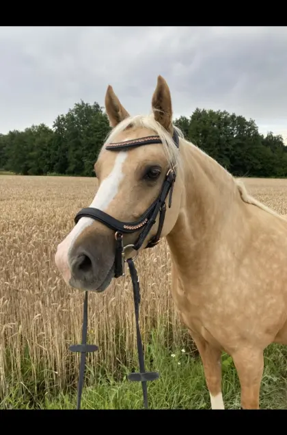 Verkaufe wegen Reitsportaufgabe meine 7-jährige Deutsche Reitponystute Goldmarie. Sie ist eine sehr sensible Stute, die Konsequenz und Struktur braucht. Ich habe sie