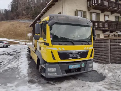 MAN TGL 12.250 4x2 Euro 6 Abschleppfahrzeug. Bj. 2016, Diesel, Automatik, 250 PS, km 744.849. Schiebeplateau 6, 2 m, 5 t Hubbrille, 2 hydr. Seilwinden. Eigengewicht 8