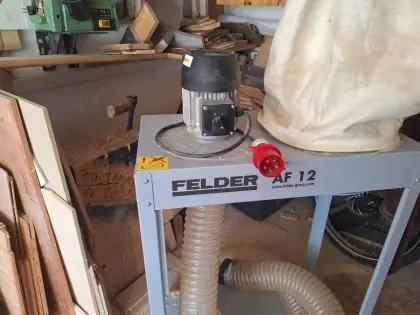 Zum Verkauf steht eine Absaugung der Marke Felder. Typ AF12, Spänesackinhalt 110 l, 400 V, 4, 5 m Absaugschlauch (120 mm), inkl. 8 Säcke. Preis VB. Forst- und Holztec