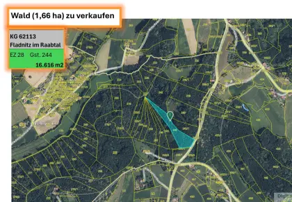 Waldgrundstück in Fladnitz im Raabtal (KG 62113, Gst. Nr. 244) mit 16.616 m² zu verkaufen. Privatverkauf, keine Makler. Realitäten/Immobilien Wälder