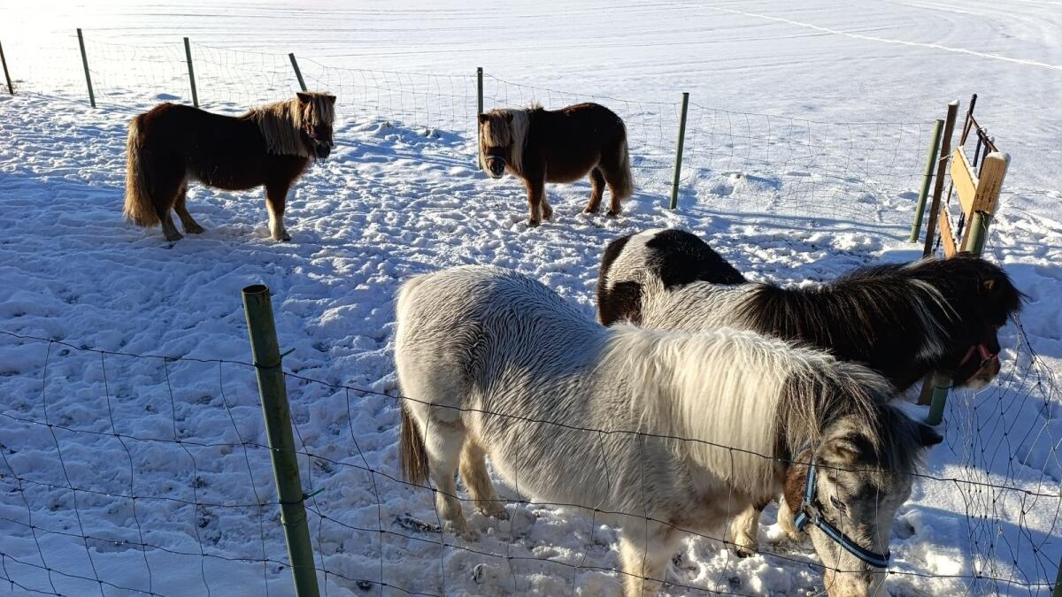 Verkaufe 4 Mini Shetland Ponys, Größe 95-115 cm. Die 2 größeren wurden geritten, die anderen nur geführt, aber sehr zutraulich und brav. Die 4 sind zusammen gewohnt.