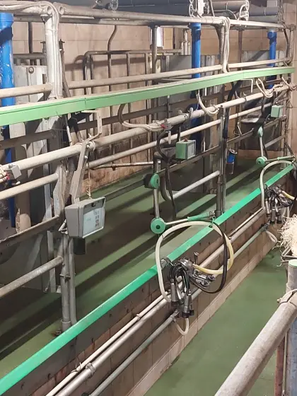 Verkaufe 3er Tandem Melkstand, inkl. Vakuumpumpe und neuwertiger Waschanlage. Verfügbar ab Ende April 2026. Preis auf Anfrage. Hof- Stall- und Weidetechnik Melktechn