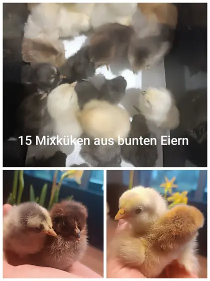 Nächster Schlupf am 22.02.2026, bei Interesse gerne melden. RESERVIERT 15 Stk. Mixküken aus bunten Eiern und verschiedenen Großrassen suchen eine neue Wärmelampe. Si