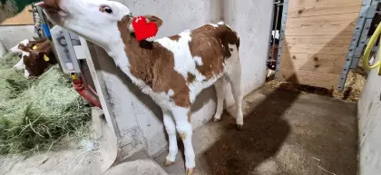 Drei Wochen altes RF (66%) FV (33%), Zuchtkalb zu verkaufen. Rindermarkt Fleckvieh