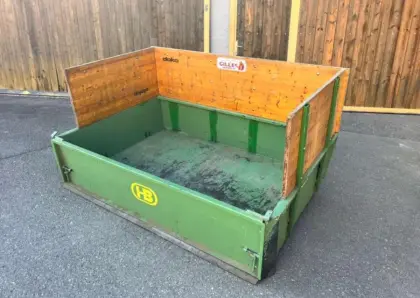 Verkaufe Brantner Heckschaufel aufgrund einer Neuanschaffung (breitere Schaufel). Breite 190 cm außen, Tiefe circa 123 cm, Höhe circa 90 cm (mit selbst gebauten Aufs