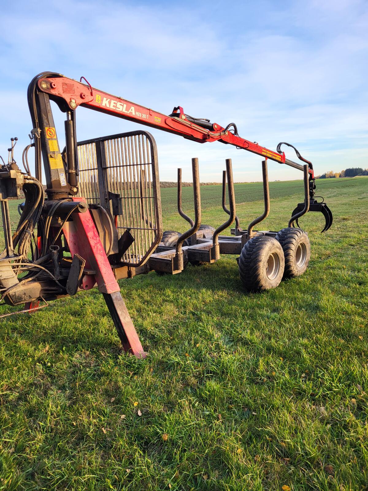 Forstanhänger Kesla Patu 10H, Bj. 2006, Kran 203T, Reichweite 6, 7m, Greifer 1, 24m, Bereifung 400/16x15.5, Beleuchtung, Gusspumpe mit Zapfwelle, 4 Rungenpaare, Brennh