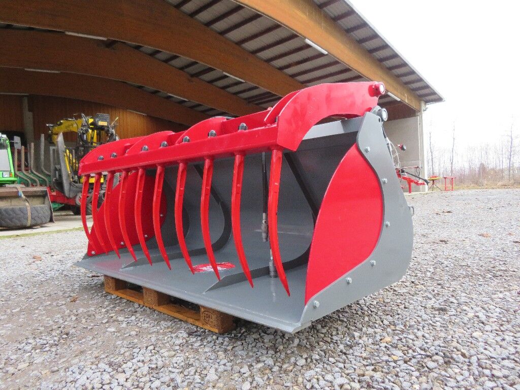 • Schaufelbreite 2.250 mm • Schaufeltiefe 1.250 mm • Höhe 600 mm • Euroaufnahme • Dreipunktanbau • Staplergabelaufnahme • Nutzlast 3.000 kg • 2 Zylinderkipp