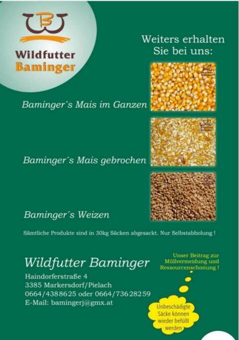 Hochwertiger Körnermais zu verkaufen! Preis pro t € 235, - inkl. MwSt., lose Abholung. Körnermais ganz, gebrochen, abgesackt in reißfesten Gewebesäcken à 30 kg bzw. 2