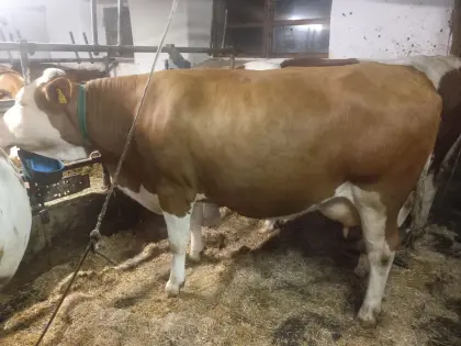 Trächtige Fleckvieh Mutterkuh. Soll kalben 20. März 2026. Besamt mit Weißblauen Belgier. Rindermarkt Fleckvieh Mutterkühe