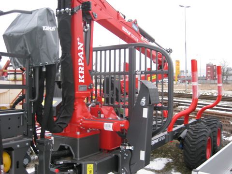 PATU Forstkranhänger- Kran 595, Reichweite 6, 5m, A- Abstützung, Drehhebelsteuerung, Greifer 125cm, - Zentralrahmenanhänger, 4 Rungenpaare, hydraulische 4 Rad Bre