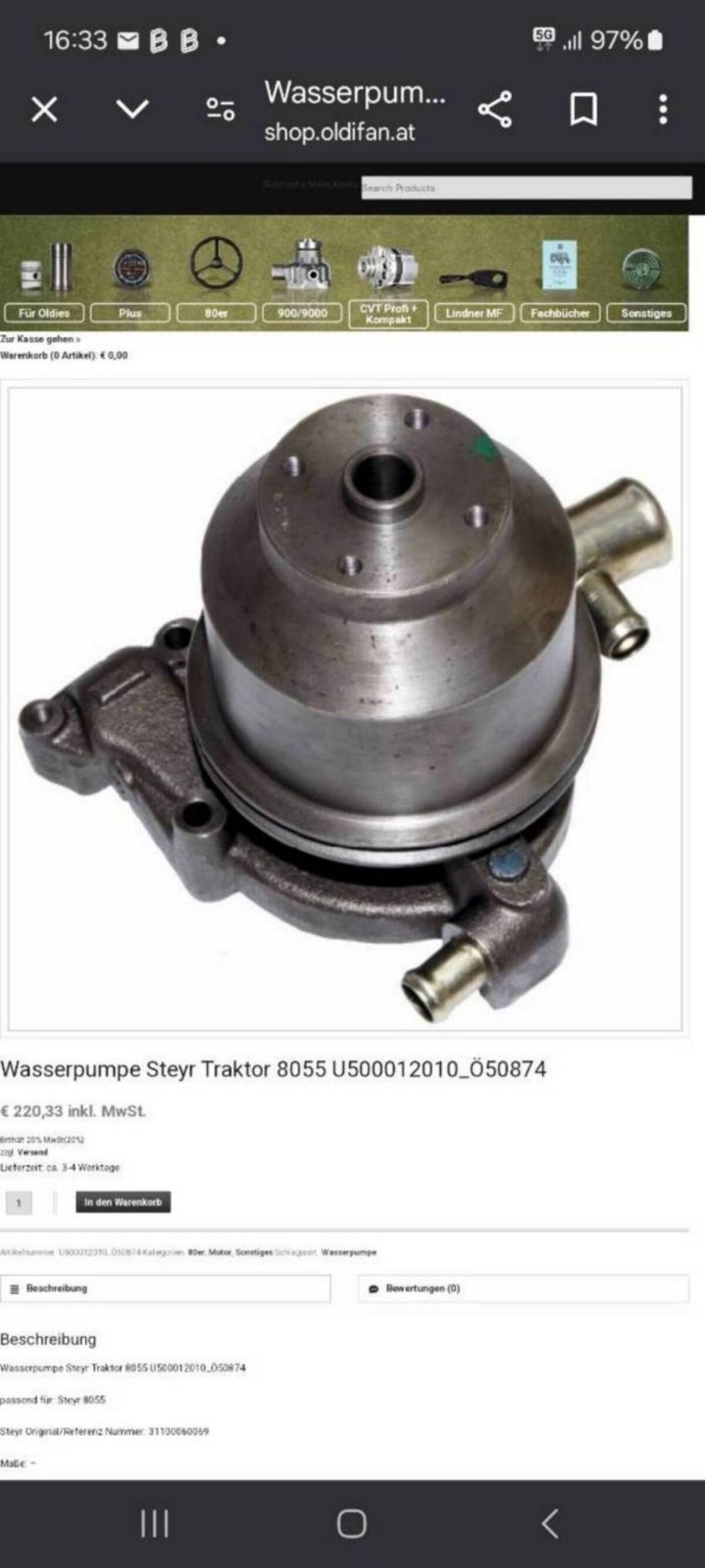 Verkaufe eine gebrauchte Wasserpumpe, schwitzt leicht, ist voll funktionstüchtig. Kühler schwitzt auch leicht, funktioniert auch noch. Preis gilt für alles zusammen.