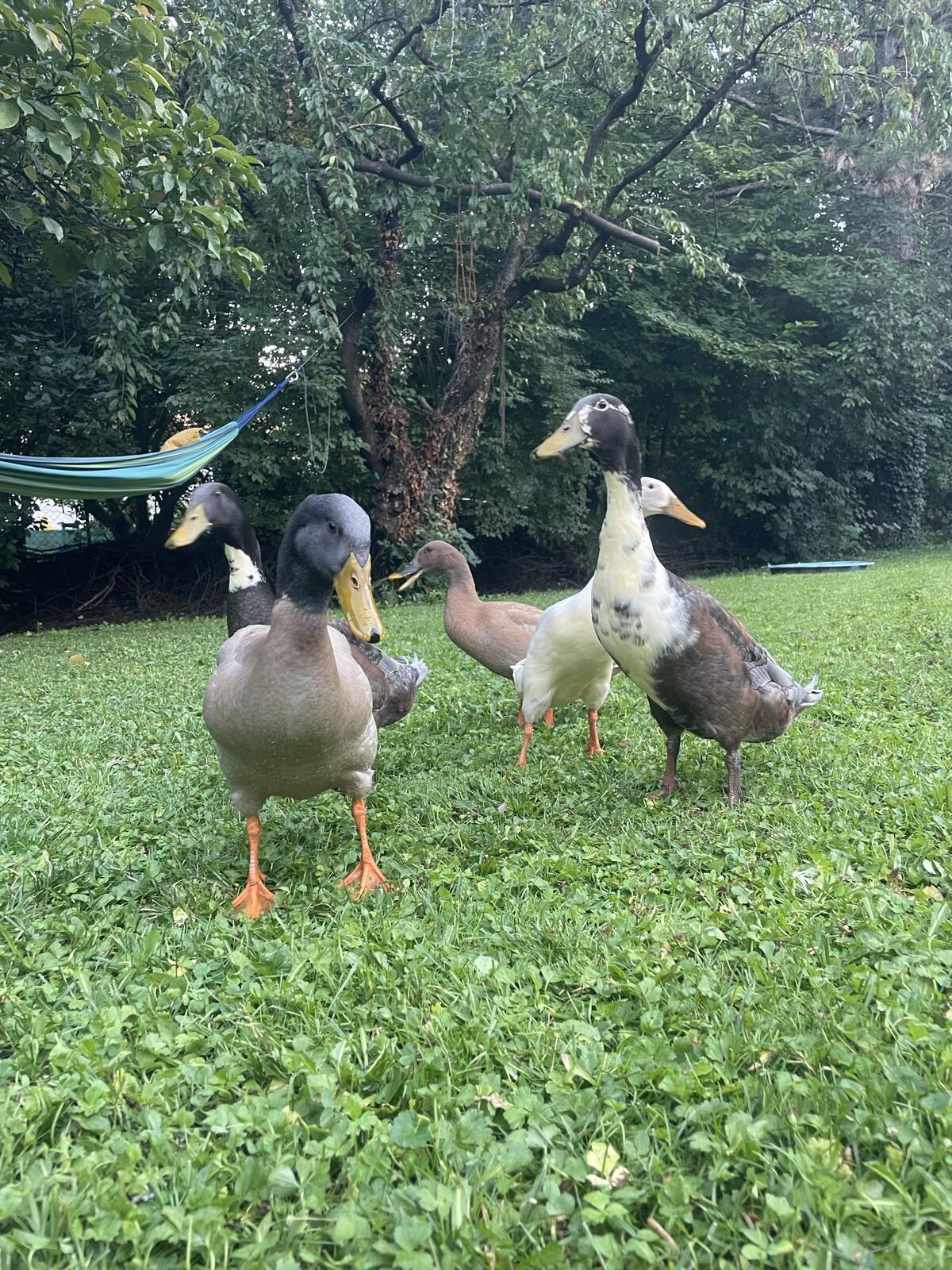 Wir müssen noch einen unserer Erpel abgeben, da sie sich in der Herde nicht verstehen. Im Mai 2025 geschlüpft. Recht zutraulich, fressen auch aus der Hand. Geflügel