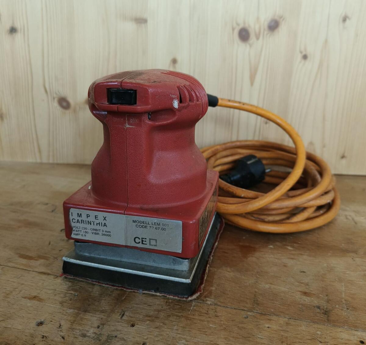 Schwingschleifer der Marke Impex Carinthia, Grundplatte mit Kletthaftsystem (100 x 115 mm), klein, handlich. Preis VHS. Werkstatt Werkzeug