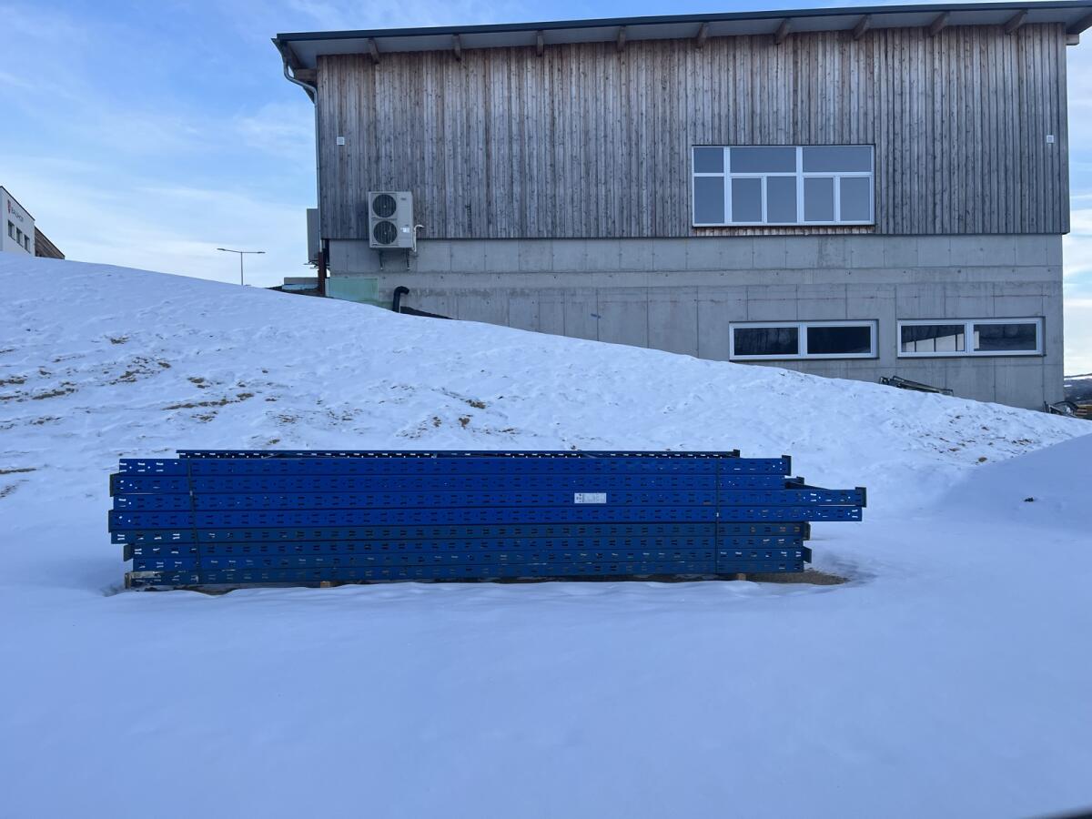 Verkaufe ein gebrauchtes Palettenregal der Marke Jungheinrich. Es besteht aus 8 Stehern und 20 Traversen mit 3, 6 m und 4 Traversen mit ca. 4, 5 m. Das Regal ist berei