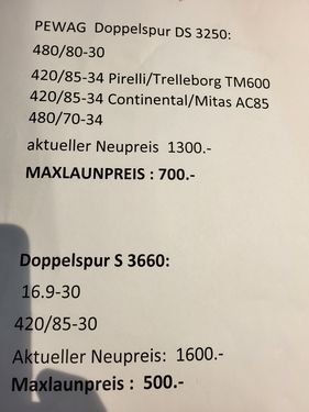 Passende Grössen : 24" : 14.00 -R24 (= 320-360mm Breite )25" : 14.00-2528": 14.9-28 , 380/85 R28Gut erhalten 60% Rabatt auf Aktuellen Neupr