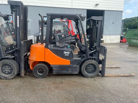 Bauart: Frontstapler / Dieselstapler, Tragkraft: 3000kg, Hubhöhe: 4730mm, Bauhöhe: 2200mm, Freihub: 1670mm, Gabellänge: 1200mm, Bereifung vorne: Superelastik 40 - 60