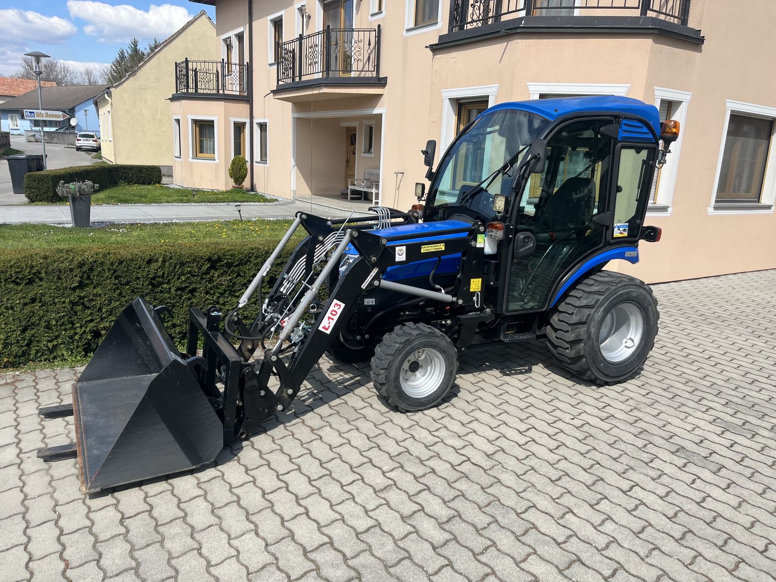 Solis 26 mit Hydrostatenantrieb. Der Solis 26 wird mit folgenden Anbaugeräten verkauft:Frontlader, Kabine, Schaufel, PalettengabelBesichtigung:3004 Ollern
