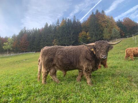Verkaufen unseren gutmütigen, halfterführigen Zuchtstier, ans Verladen gewöhnt, gekört 2b, Geb. 06 2022. Telefonisch gerne mehr Auskünfte. Rindermarkt Hochlandrinder