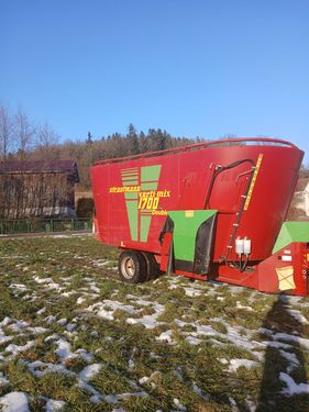 Gebrauchter Strautmann Futtermischwagen Verti-Mix 1700 Double, mit ca 17 m Volumen. Der Strautmann Verti-Mix 1700 Double ist ein robuster, gezogener Doppel-Futtermis