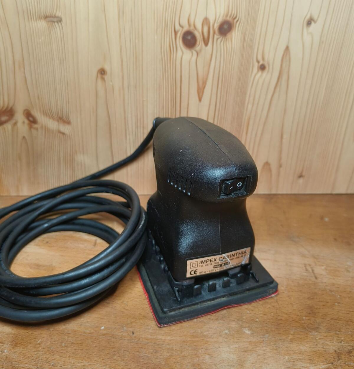 Schwingschleifer der Marke Impex Carinthia, Grundplatte mit Kletthaftsystem (100 x 115 mm), klein, handlich, perfekt für Ecken und Kanten. Preis auf Anfrage. Werksta