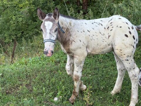 KIT Ludwig, Absetzer, Junghengst. Geboren 2024, Farbe: weiß. Seine Mutter ist unsere Larissa in weiß. Sie hat aber viel Farbe im Hintergrund. Sein Vater ist beige. B