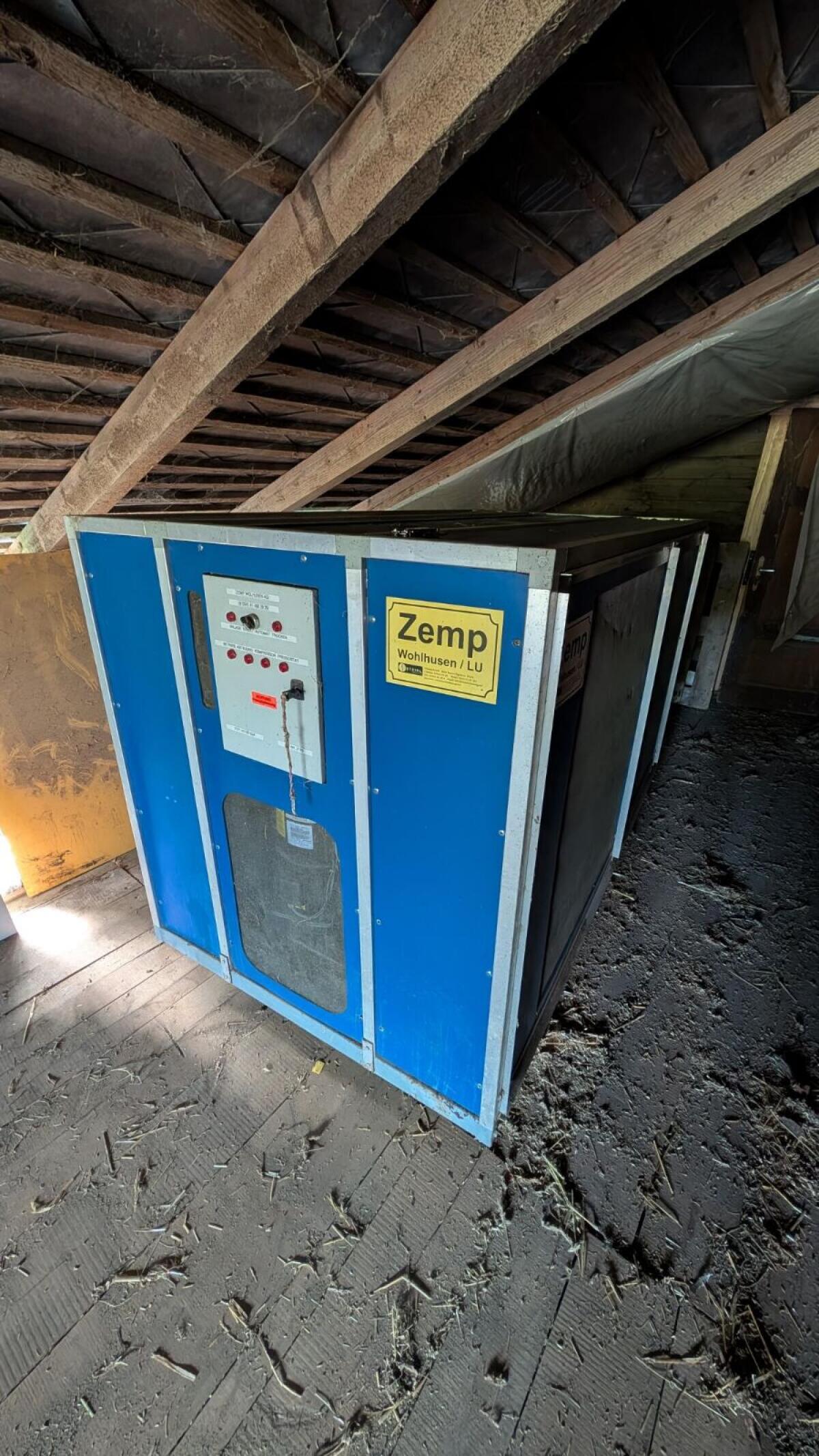 Zemp Heutrocknungsanlage HT30 – 9, 5 kW. Bstd.: 1.043. Für ca. 60–70 m² Heubox. Kältemittel R507, 13 kg. Zum Verkauf steht eine zuverlässige Heutrocknungsanlage Zemp