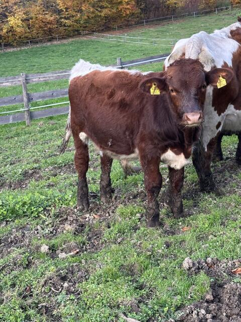 Reinrassiges Pinzgauer Kalb weiblich zu verkaufen, geboren Juni 2025, aus Mutterkuhbetrieb. Preis € 1.000, -. Standort 9073 Viktring. Rindermarkt Pinzgauer