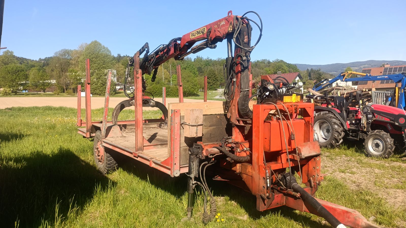 Einachs Rückewagen mit Palfinger Doppelausschubkran, Rotator, Zange, Anhänger mit Eigenölversorgung sofort einsatzfähig. Forst- und Holztechnik Forstanhänger / Rück