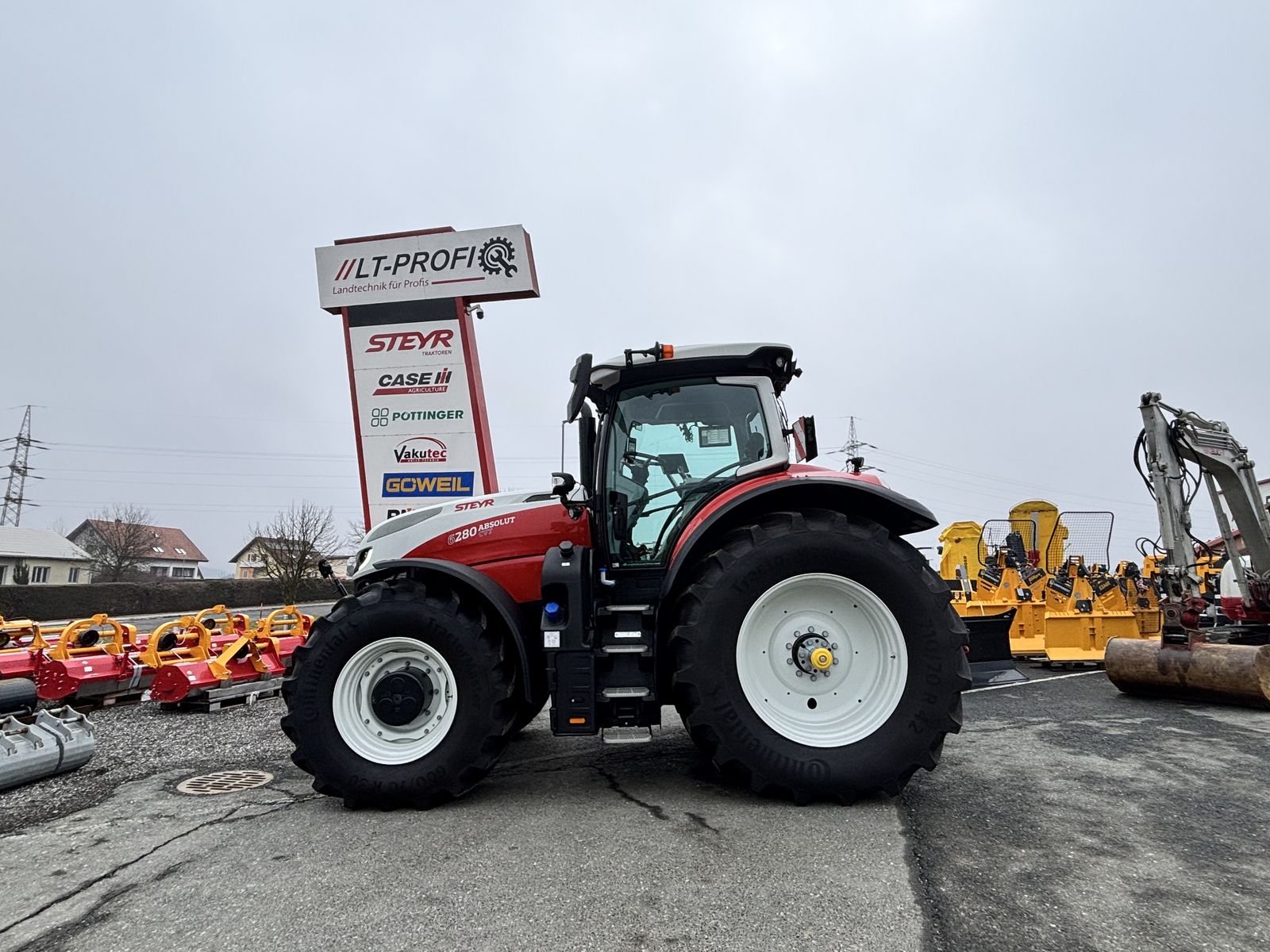 Steyr 6280 Absolut CVT==Neumaschine==- 4 elektrische Hecksteuergeräte- 2 elektrische Zwischenachssteuergeräte- höhenverstellbare Anhängerkupplung mit
