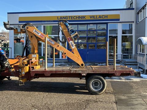 Forstanhänger mit starken Rahmen und geschlossene Ladefläche (Plateau) mit Stahlboden, 2 Rungenpaare, Beleuchtung, Zwillings-Bereifung, Penzkran 6, 7 m mit Teleskopa