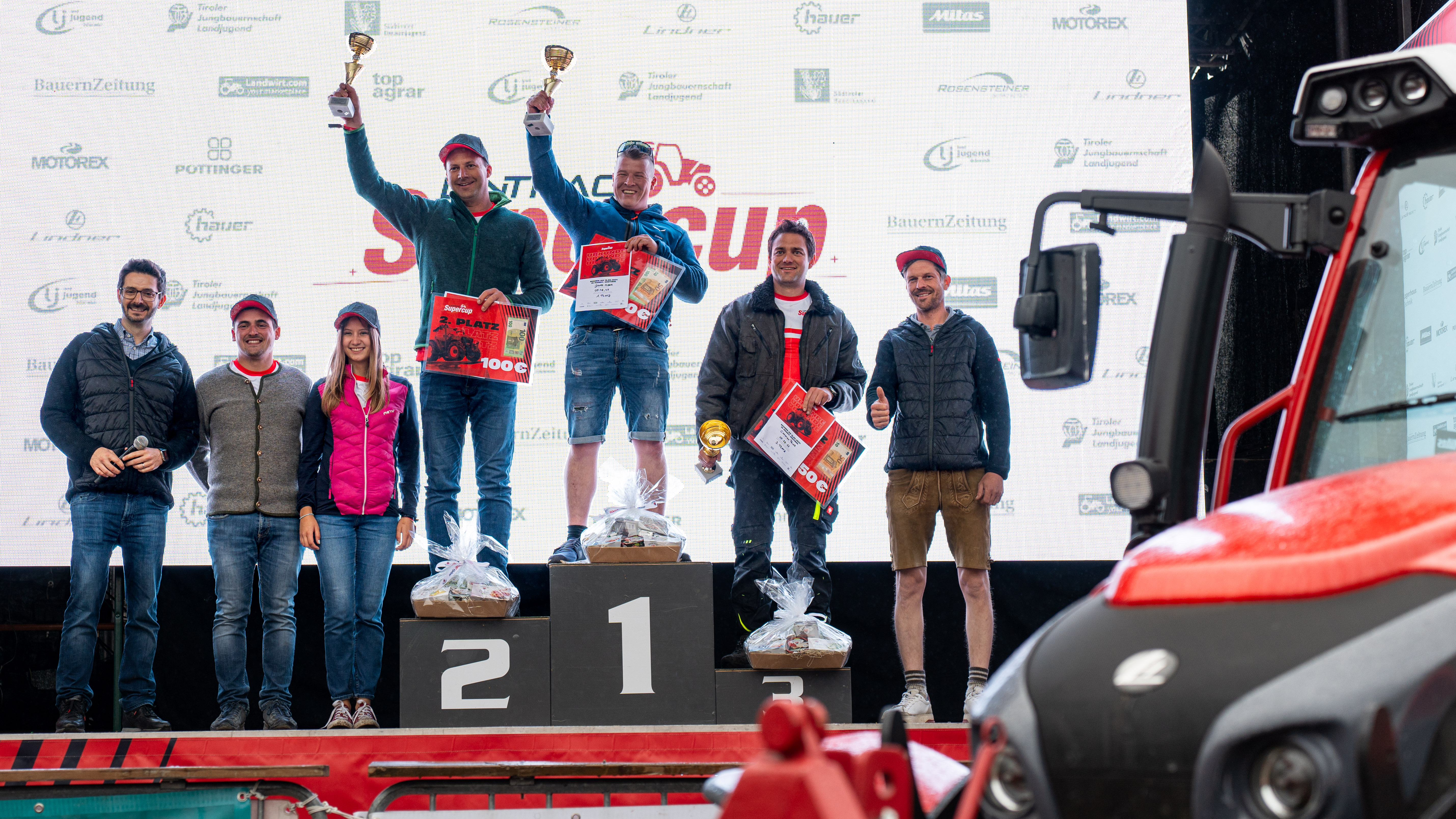 Große Begeisterung und Zuschauerinteresse prägten das Südtiroler Landesfinale des Lintrac Supercup 2024. Jonas Alber aus Vöran meisterte in 5 Minuten und 48 Sekunden am schnellsten die zahlreichen beeindruckenden Hindernisse sowohl am realen als auch am virtuellen Parcour. Auf den Plätzen folgten Markus Egger und Christian Prinz. In der virtuellen Wertung überzeugte Johannes Hofer mit der Bestzeit von 1 Minute und 31 Sekunden. Das Team der drei besten Südtiroler Traktorfahrer der Bauernjugend qualifizierte sich für damit für das große Finale im September in Wels.
