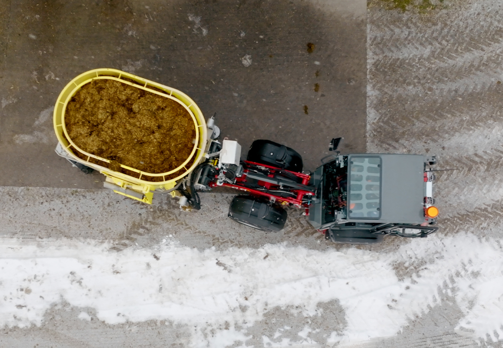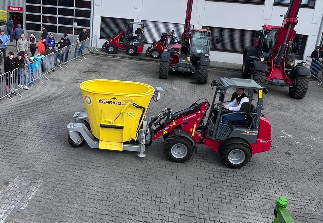 Mauch-Mitarbeiter Josef Manglberger testete das brandneue Gerät bereits ausgiebig auf seinem Hof. Dabei wurden drei verschiedene Modelle des Weidemann Hofladers verwendet: der 1140, der 1190e und der 1390. Das Ergebnis war überzeugend: Der Koala 2,5 Cart konnte selbst mit dem kleinsten Modell der Weidemann-Baureihe mit 25PS spielend leicht betrieben werden. Die Kombination aus dem schmalen Design des Koala Futtermischwagen und der Knicklenkung des Weidemann Hofladers ermöglicht eine hervorragende Wendigkeit, selbst in engsten Durchlässen und verwinkelten Ställen.
