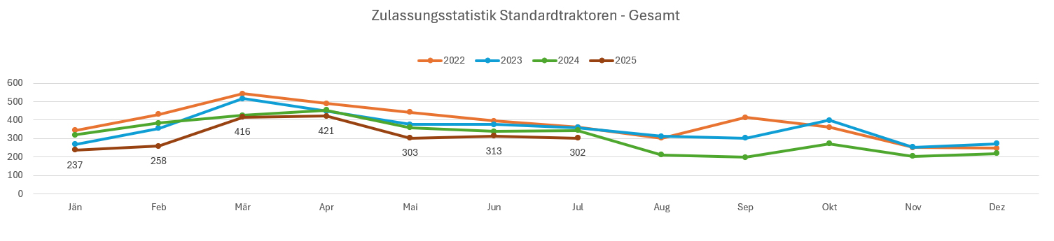 Standardtraktorenzulassungen Jänner bis Juli 2025
