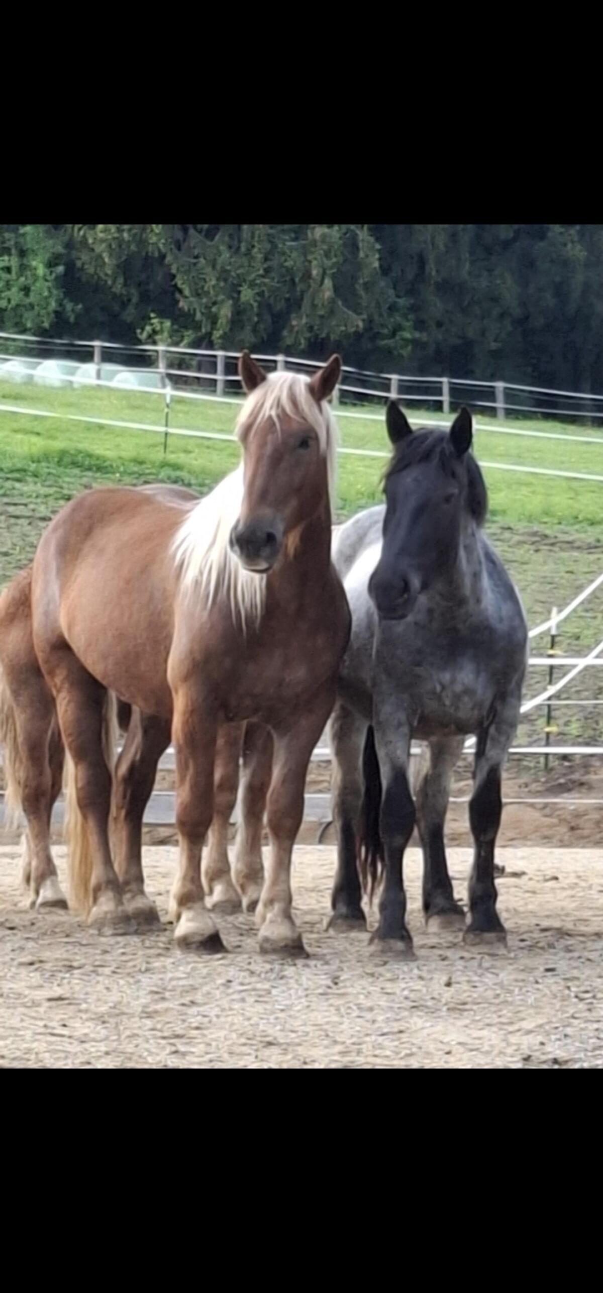 3, 5-jährige Mohrenkopfstute und 4, 5-jähriger Dunkelfuchswallach suchen neues Zuhause. Stute ist angeritten und noch nicht in Stutbuch aufgenommen. Sehr ruhiges Wesen