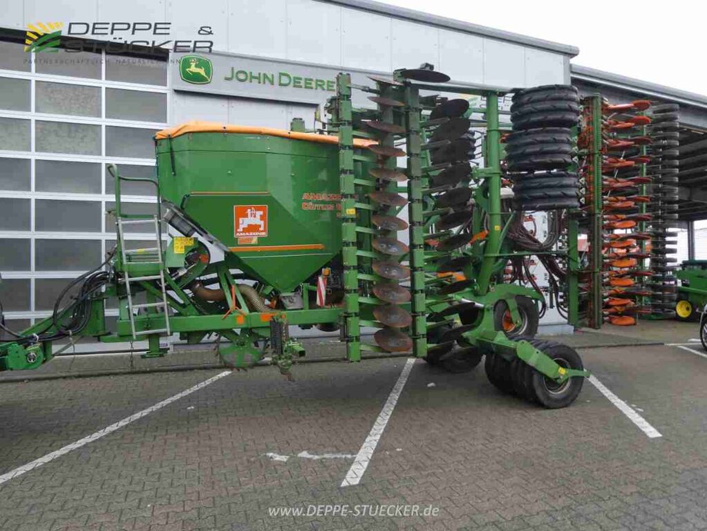Amazone Cirrus 6001 Spezial, Aufgesattelt mit Unterlenkeranhängung, 6m Arbeitsbreite, Pneumatische Drillmaschine mit hydr. Gebläseantrieb, 2 Dosiereinheiten, 2 Verteilerköpfe, Saattank 3600ltr. mit Beleuchtung, Kurzscheibenegge hydr. verstellbar, Spurlockerer, Spuranzeiger, Vorauflaufmarkierer, Packerfahrwerk 400/50-15.5IMP, 48 Rollschare mit 12,5cm Scharabstand, Schardruckverstellung mechanisch, Rollstriegel, die Maschine hat seit Inbetriebnahme ca. 6165 ha gedrillt. inkl. div. Neuteile und Monitor