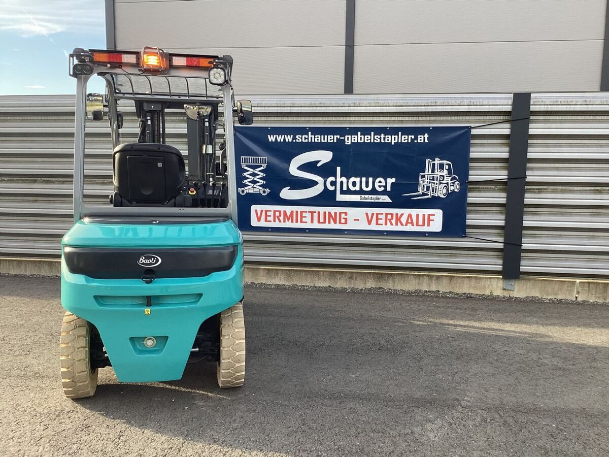 Bauart: Frontstapler / Elektro 4 Rad-Stapler, Tragkraft: 3500kg, Hubhöhe: 4650mm, Bauhöhe: 2212mm, Freihub: 1615mm, Gabellänge: 1200mm, Batterie: 80V 600Ah Zustand: Neu, Bereifung vorne: Superelastik , Bereifung hinten: Superelastik , Anbaugeräte: Seitenschieber, Anbaugerätebeschreibung: Vorgehängter Seitenschieber 3-3,5t 1100mm Sonderausstattung: Halbkabine, Sonderausstattungbeschreibung: Komfortsitz + ISO Sicherheitsventil 3691 Dachscheibe Glas USB Ladegerät Panormaspiegel Warnleuchte: Blitzleuchte unter dem Dach, geschützt Arbeitsscheinwerfer hinten: LED-Ausführung am Schutzdach oben rechts, geschützt Beleuchtungsanlage: LED-Ausführung vorn: 2 geschützte LED-Scheinwerfer mit Fahrtrichtungsanzeiger hinten: LED-Schluss- und Bremsleuchten, Fahrtrichtungsanzeiger, Warnblinkanlage Arbeitsscheinwerfer vorn: LED am Schutzdach, oben links und rechts, geschützt Warneinrichtung: akustischer Signalgeber Warnzonenleuchten: Safety Zone Light. Seitliche Warnlichter projezieren blaue Lichtbalken