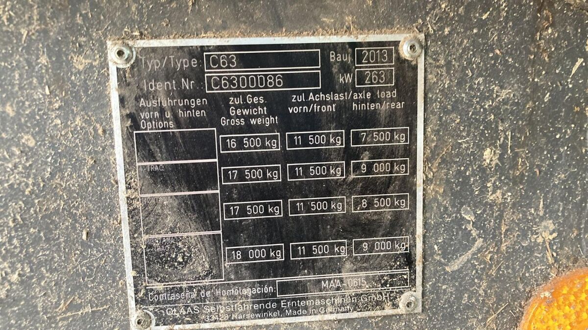 Claas Lexion 630 eff. Std 1244 (Int-Nr.: 15344) Baujahr 2013 2607 Motorstunden, 1616 Trommelstunden, 1244 eff. Arbeitszeit Auto Contour Schneidwerksregelung,Vorsatzgeräteantrieb 80 kW,Schneidwerkszylinder mit 2-Wege-System,E-Kanal (S) Contour Kette, Anhängekupplung automatisch, Stützwalze, Umlenkwalze offen, APS Dreschsystem Getreide, Trommelregeltrieb, Seitenreiter für Schüttler angebaut, Standard Reinigung inkl. 3D,Gebläseverkleidung,Überkehr-Volumenmessung mit CEBIS Anzeige,Korntank 9000 Liter, Korntankauslaufrohr M Q330 mm,Korntankentleerung XL, Standardverteiler Special cut, Triebachse M 10-Loch, 25 km/H, CAT Motor C 9.3 264 kW 359 PS T4i,Kraftstofftank 800 Ltr, Kühlaggregat für Staubox M/L, CEBIS Terminal, Quantimeter Ertragsmessung, Komfortsitz luftgefedert, Arbeitsbeleuchtung Xenon HighEnd,Neigungssensor,CMOTION Multifunktionsgriff, Rückspiegel elektr. einstellbar,Kettenschmierung für Korntankentleerung autom.,Rundumleuchten zwei Stück, Zusatzausrüstung Überbreite,Kennzeichenbeleuchtung, Nahbereichsspiegel, Bereifung: 800-65 R32 10-Loch 80 % 500-70 R24 6-Loch 30 % Claas Schneidwerk C5,4 m klappbar Option: Cerio Schneidwerk 6,2 m mit Wagen Mehrpreis 9.000,00 EUR zzgl. MwSt. Allradachse 17.900,00 EUR zzgl. MwSt.Sonnenblumenausrüstung für 5,4 m klappbar 4.900,00 EUR zzgl. MwSt. Rapstisch 5,4 m klappbar 6.400,00 EUR zzgl. MwSt. Es handelt sich hierbei lediglich um eine Anzeige, die zu Informationszwecke dient. Der Kaufvertrag kann nach unseren AGBs mit uns abgeschlossen werden.