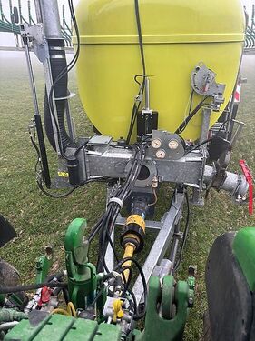 Achse verschiebbar für mehr Stützlast im Feld. Das Fass kann auch mit kleinem Schlepper bewegt werden.