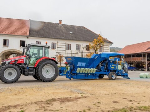 Göweil Rundballenpresse Wickelkombination - Typ: LT-Master F60 - Festkammerpresse - Ballenmaße 0,60x0,60m - Hydraulisch angetriebene Presskammer - kombinierte Doppelbindung für Netz und Folie Zubringer und Dosierung - Geräumiger Bunker mit 3,5m³ Volumen und Sichtfenster - Dosierung über Steilförderer in Presskammer - Rückführband aus PVC unter der gesamten Maschine zur Vermeidung von Bröckelverlusten Wickler - hydraulisch Kippbarer Wickeltisch für bessere Ballenübergabe - Doppelwickelarm - Folienvorstrecker für 250mm und 375mm - Folienabschneider - mechanisch abklappbare Ballenablagerampe - Handsender mit Funk für Ballenablage - Folienüberwachung und Einfolienbetrieb Steuerung - Terminal PROFI plus L - Bordhydraulik mit Ölkühler - automatische Zentralschmieranlage für Öl - Bereifung 380/55-17 - Hydraulisch verstellbare Liftachse - Folienmagazin für 14 Rollen - LED Arbeitsscheinwerfer - Gewicht ca. 4420kg Für verschiedenste press- und wickelbare Materialen: Mais, CCM, Luzerne, Gras, uvm... Bilder können Zusatzausstattung beinhalten. Optional: - Kamerasystem - Vollautomatische Zentralschmierung für Fett Gerne können wir Ihnen eine Finanzierung über eine Partnerbank anbieten.