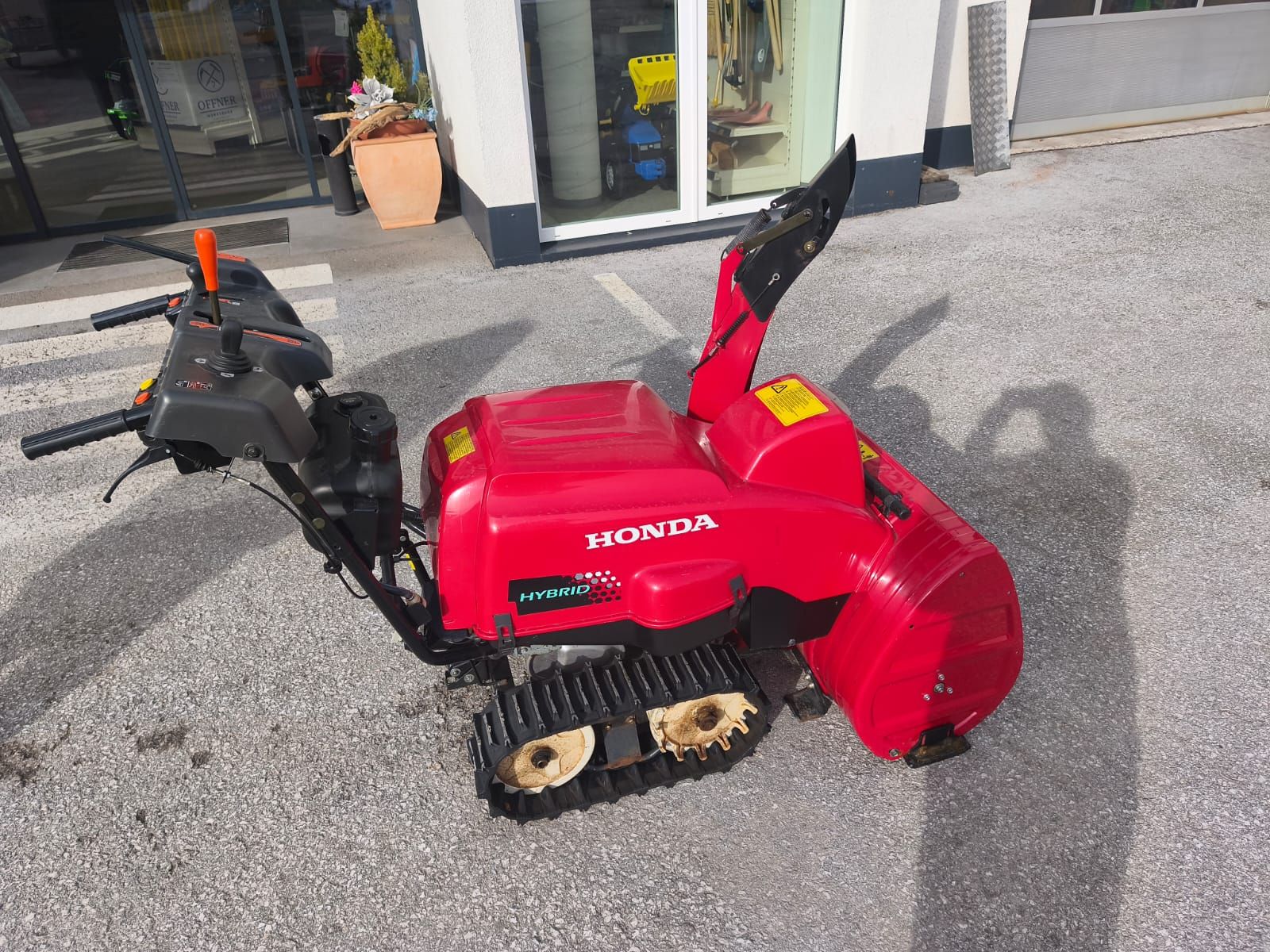 Honda Hybridschneefräse mit Raupenantrieb, Elektrische Lenkung per Knopfdruck, Elektrische Kaminverstellung Joystick. Die volle Motorleistung für Fräse, Fahren mit Elektromotor