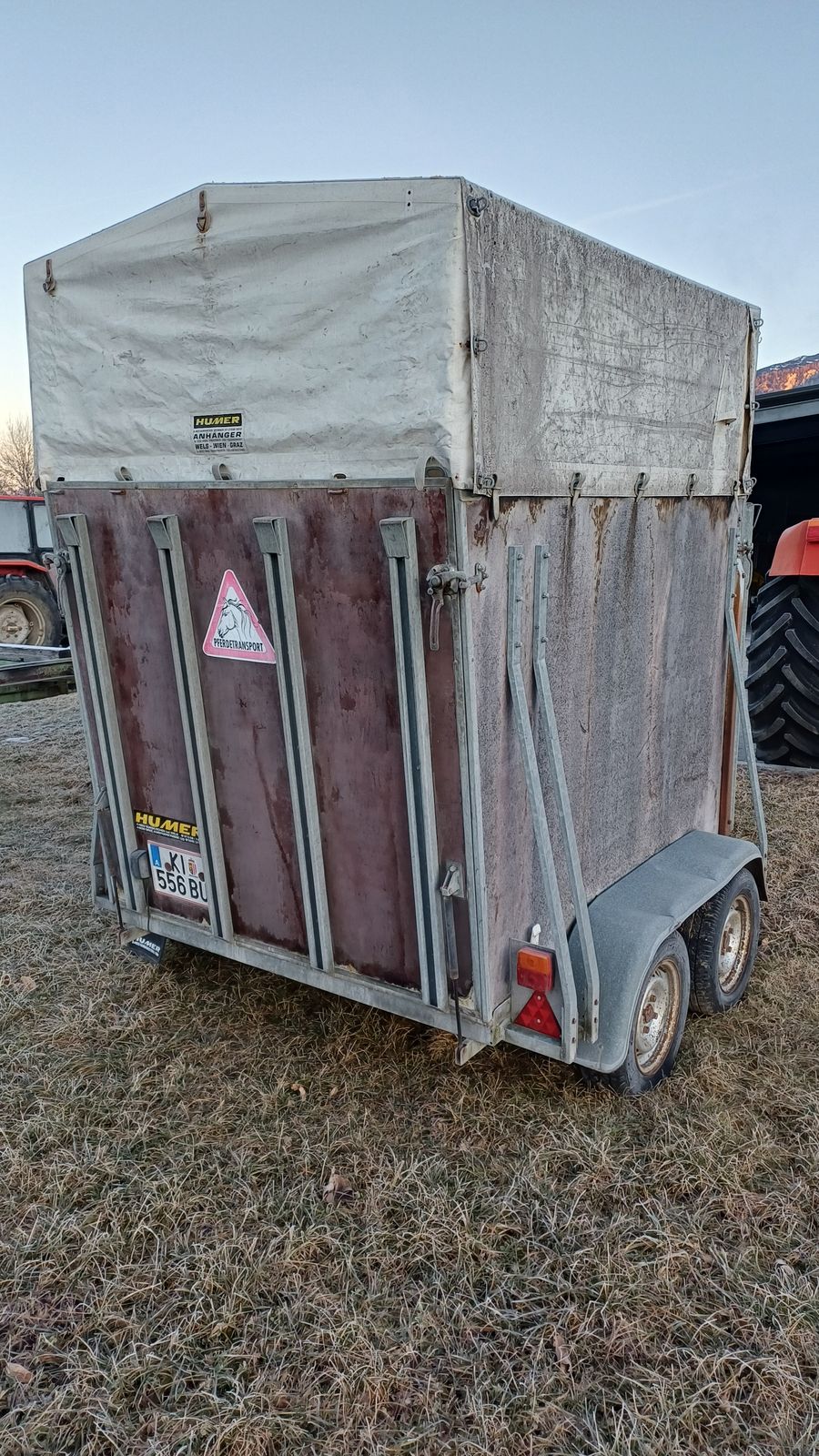 Reparturbedürftiger Humer Tandem Viehanhänger, Bremsen und Bereifung defekt, Seitenwände in Bodennähe teilweise durch. Privatverkauf durch Kunde