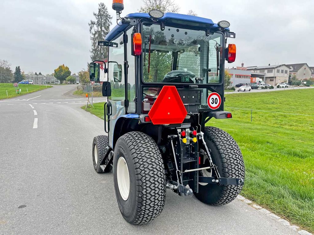 AMS 35561 Motor: Motorleistung 40 PS Common Rail Turbo Dieselmotor Abgasnorm Stage V Anzahl Zylinder3 Hubraum 1'826 cm³ Tankinhalt 35 l Antrieb: Hydrostatisch 3 Fahrstufen Bedienung Über 1 stehendes Fusspedal Tempomat mit Speicherfunktion Differenzialsperre hinten Allradantrieb Automatives Gas Geschwindigkeit 0-32 km/h Bremsen Nasse Scheibenbremsen/Ölbad Lenkung Servolenkung Zapfwellen: Heckzapfwelle 540 / 750 min-¹ separat schaltbar Frontzapfwelle 2000 min-¹ separat schaltbar Zwischenachszapfwelle 2000 min-¹ separat schaltbar Softanlaufschalter Serie, für sanften Zapfwellenstart Hydraulik: Hubwerk Kat. 1 Hubkraft an der Ackerschiene 1200 kg Arbeitshydraulik 29.2 l/ min Gesamtleistung 41.5 l/ min Gewicht: mit Kabine ca.1620 kg Kabinenausstattung: Heizung, Lüftung und Klimaanlage Komfortsitz mit Luftfederung 2 LED-Arbeitsscheinwerfer vorne. 2 LED-Arbeitsscheinwerfer hinten Kabeldurchführung Höhe mit Kabine ca. 2150 mm Grundmaschine 1 Satz Rasenbereifung v: 26x10.50-12 h: 13.6-16 Unterbodenschutz / Vollkonservierung CH Paket Rundumleuchte LED, Zugmaul verstellbar Zusatzhauptscheinwerfer vorne Frontkraftheber mit Kuppeldreieck Kat. 0 Frontkraftheber mit Kuppeldreieck Kat. 0 und und zusätzlichem Hubzylinder