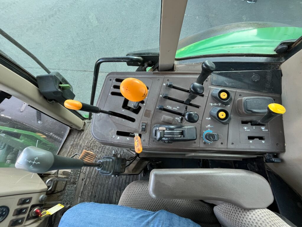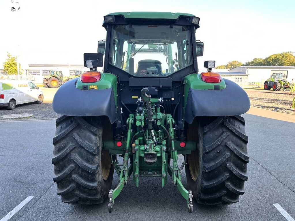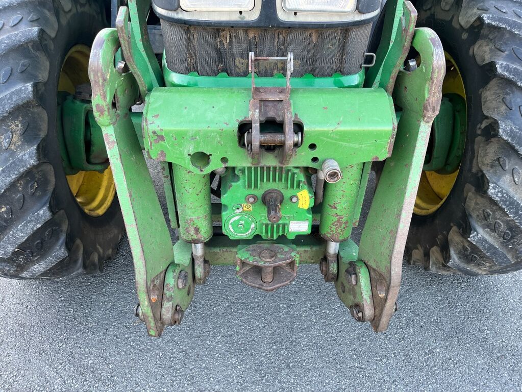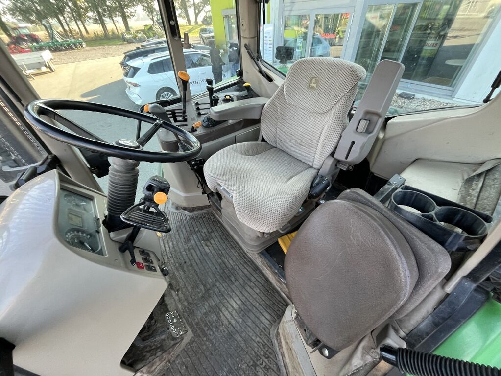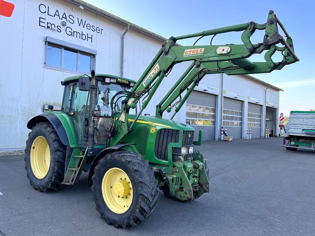 JOHN DEERE 6520, EZ 03.05.2005, TÜV/ HU 01/2027, 85 KW/ 115 PS, Degenhart FKH + FZW (Bj. 2012), 24/24-Gang Teil-Lastschaltgetriebe bis 40 km/h, Wendeschaltung, 3 DW, autom. AHK, EHR, Druckluftbremsanlage, Zusatz-Arbeitsbeleuchtung, Radio, Frontlader STOLL Robust F 31, Multikuppler. Änderungen, Irrtümer und Zwischenverkauf vorbehalten.